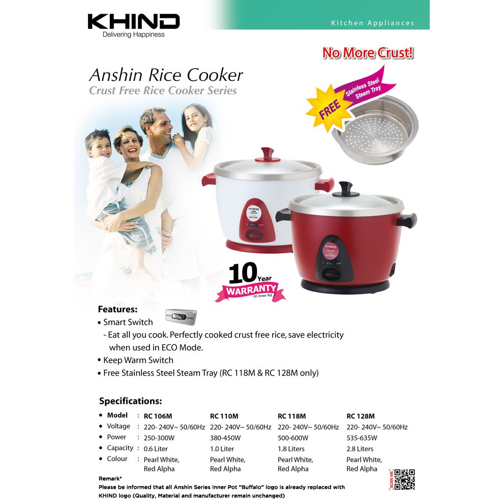 Khind 0 6l Anshin Rice Cooker Rc106m Crust Free Stainless Steel